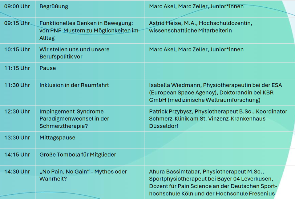 wir laden herzlich zu unserem Juniorenkongress 2026 für angehende Physiotherapeutinnen und -Therapeuten an die Sporthochschule Köln ein.