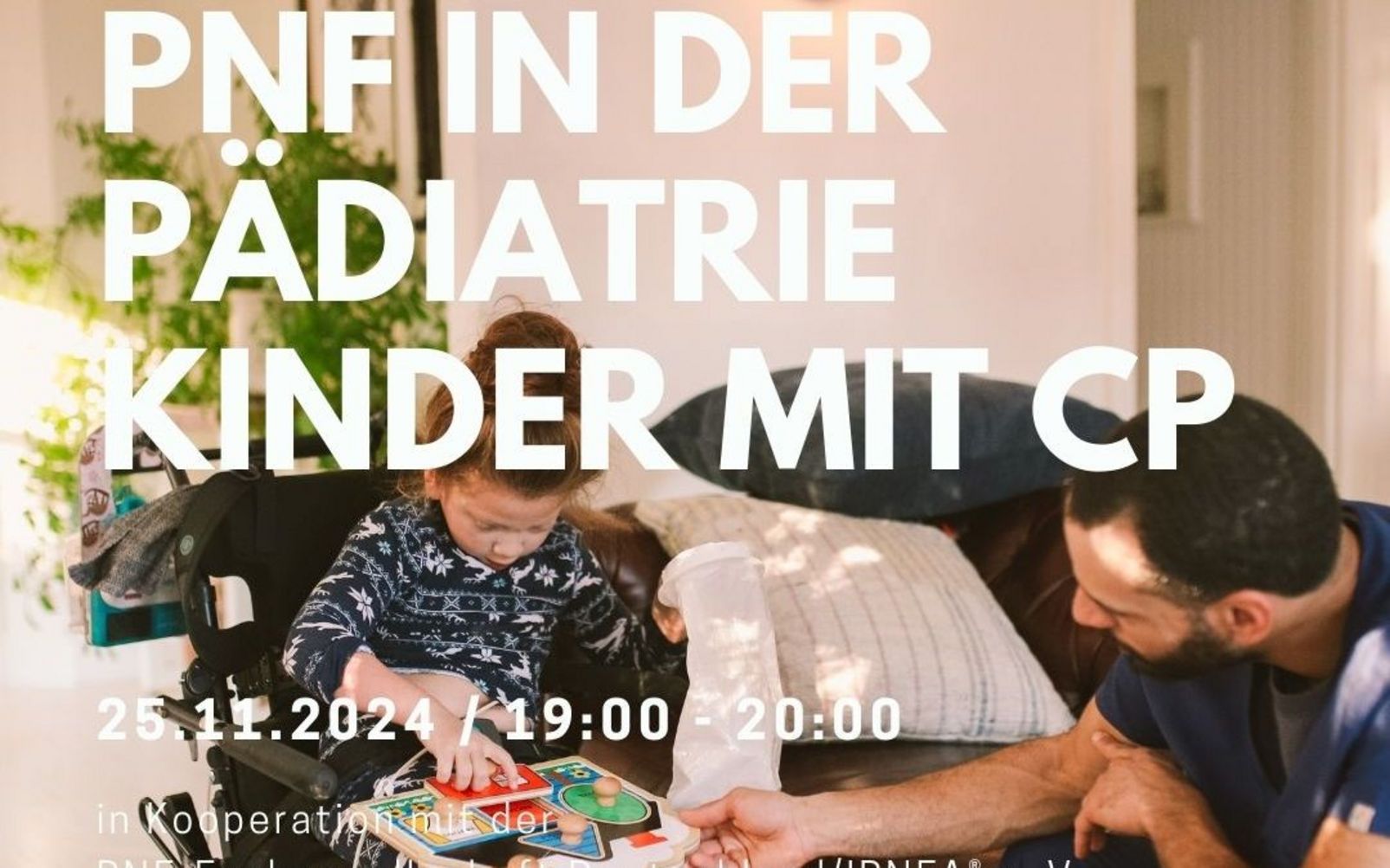 Wir freuen uns sehr, in Zusammenarbeit mit der PNF-Fachgesellschaft Deutschland/IPNFA® e.V. weiteres Webinar aus der Reihe „Rehabilitation auf den Punkt gebracht und in die Praxis umgesetzt“ anbieten zu können. Am 25. November 2024 wird Anke Müßigbrod (PT, IPNFA Advanced Instructor) über das Thema PNF in der Pädiatrie mit Schwerpunkt Kinder mit Zerebralparese referieren. Der ca. einstündige Vortrag startet um 19 Uhr, für unsere Mitglieder ist die Teilnahme kostenfrei.