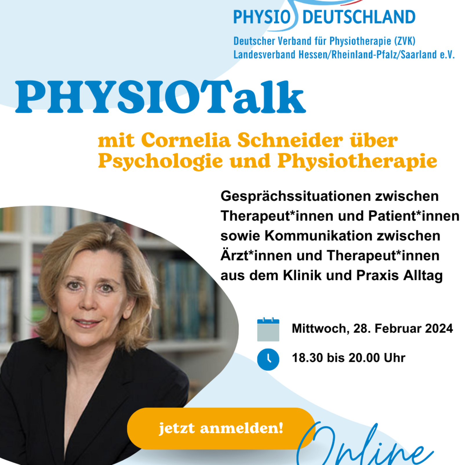 Freut Euch also auf einen spannenden Austausch mit Cornelia Schneider mit Tipps und Tricks zum Thema Kommunikation in der Praxis sowie in der Klinik.