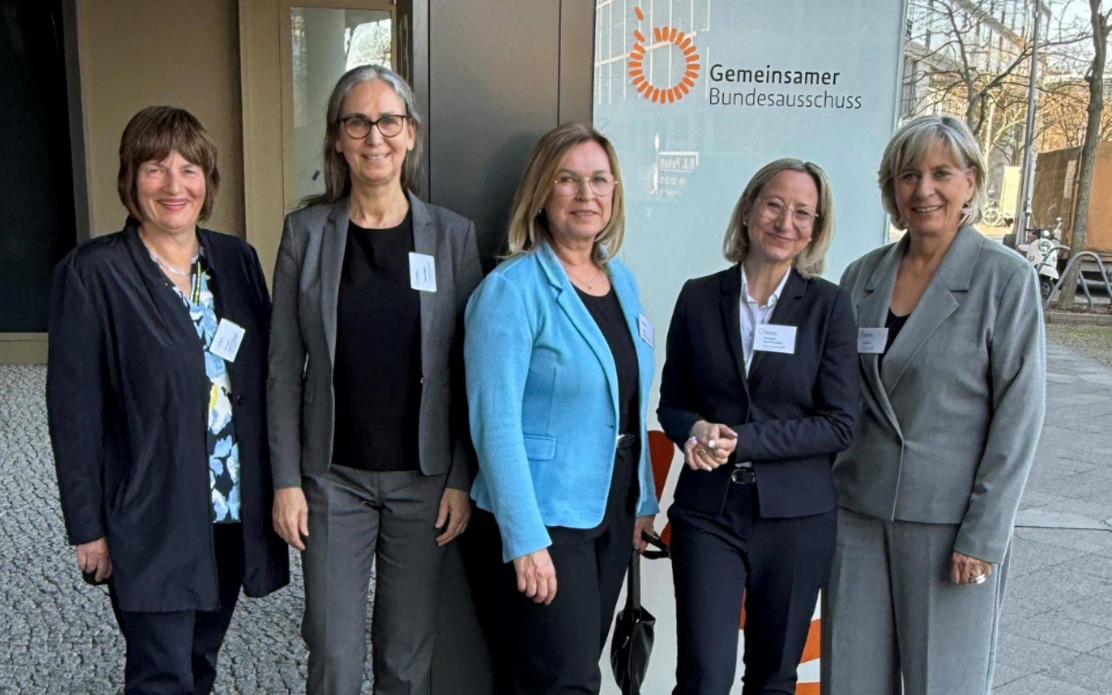Zu den eingeladenen Gästen zählten auch die Vorstände des Spitzenverbands der Heilmittelverbände e. V. (SHV), wobei die SHV-Vorsitzende Manuela Pintarelli-Rauschenbach (VPT) den Spitzenverband sowohl mit einem Fachvortrag als auch in der Podiumsdiskussion aktiv repräsentierte. Ebenfalls vor Ort für den SHV waren Katrin Schubert (dbs), Ute Repschläger (IFK), Jeannette Polster (BV für Podologie), Andrea Rädlein (Physio Deutschland) sowie Stephan Olbrich (dbl) und Irini Tsangaveli (DVE – beide nicht auf dem Foto). Der SHV begrüßte die intensive Beteiligung der Heilmittelerbringer am gesamten Verfahren, die in dieser Form bisher nicht selbstverständlich war.