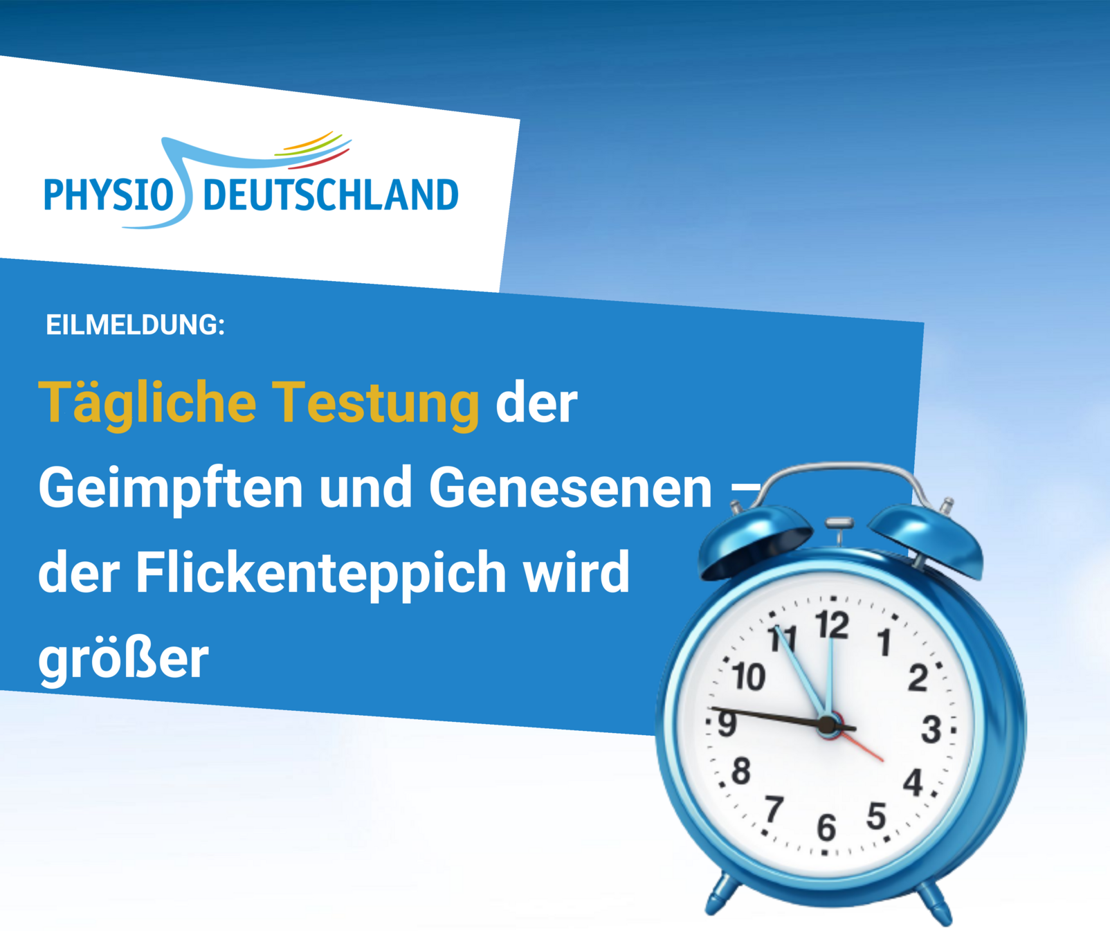 PHYSIO-DEUTSCHLAND wird Sie weiterhin auf dem Laufenden halten und Ihnen evtl. Dokumentationsvorlagen bereitstellen, sobald die Rechtslage geklärt ist. Wir setzen uns dafür ein, mit den Ministerien schnellstmöglich eine praktikable Lösung zu erwirken, die Infektionsschutz und Bürokratieaufwand gleichermaßen berücksichtigt.
