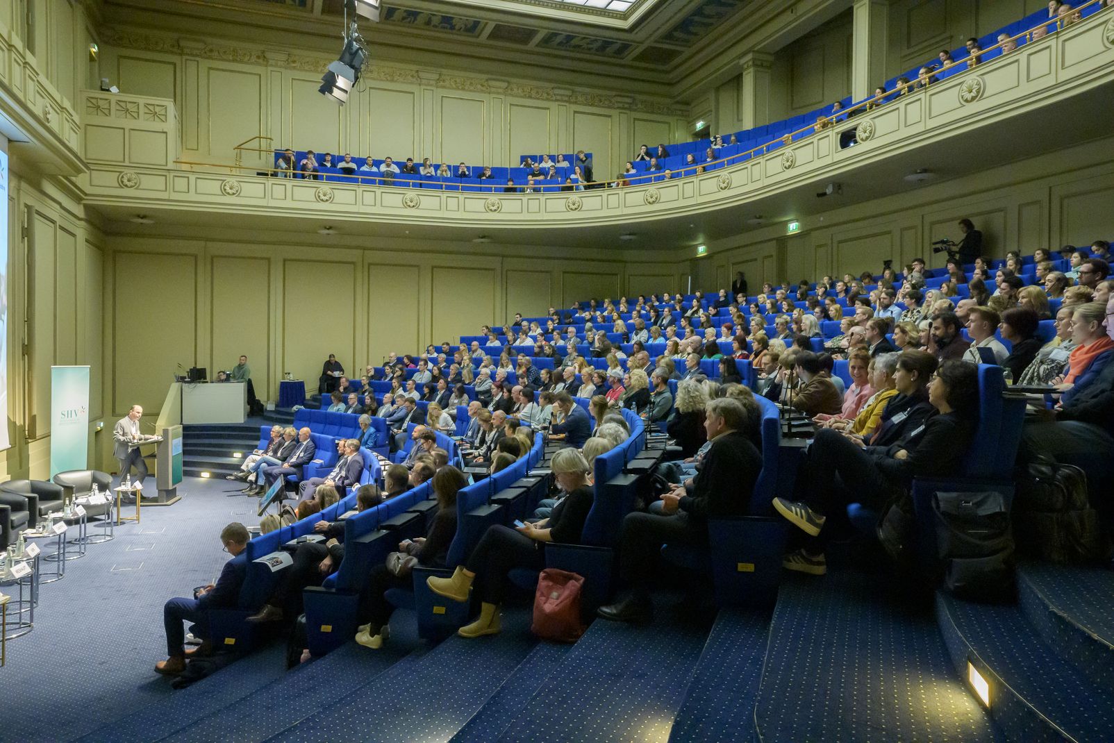 Rund 500 Teilnehmerinnen und Teilnehmer aus der Heilmittelbranche fanden sich ein im Historischen Saal des Langenbeck-Virchow-Hauses, um die dreistündige Podiumsdiskussion zu verfolgen, zu der die SHV-Vorsitzenden Gäste aus Politik und Verwaltung eingeladen hatten.